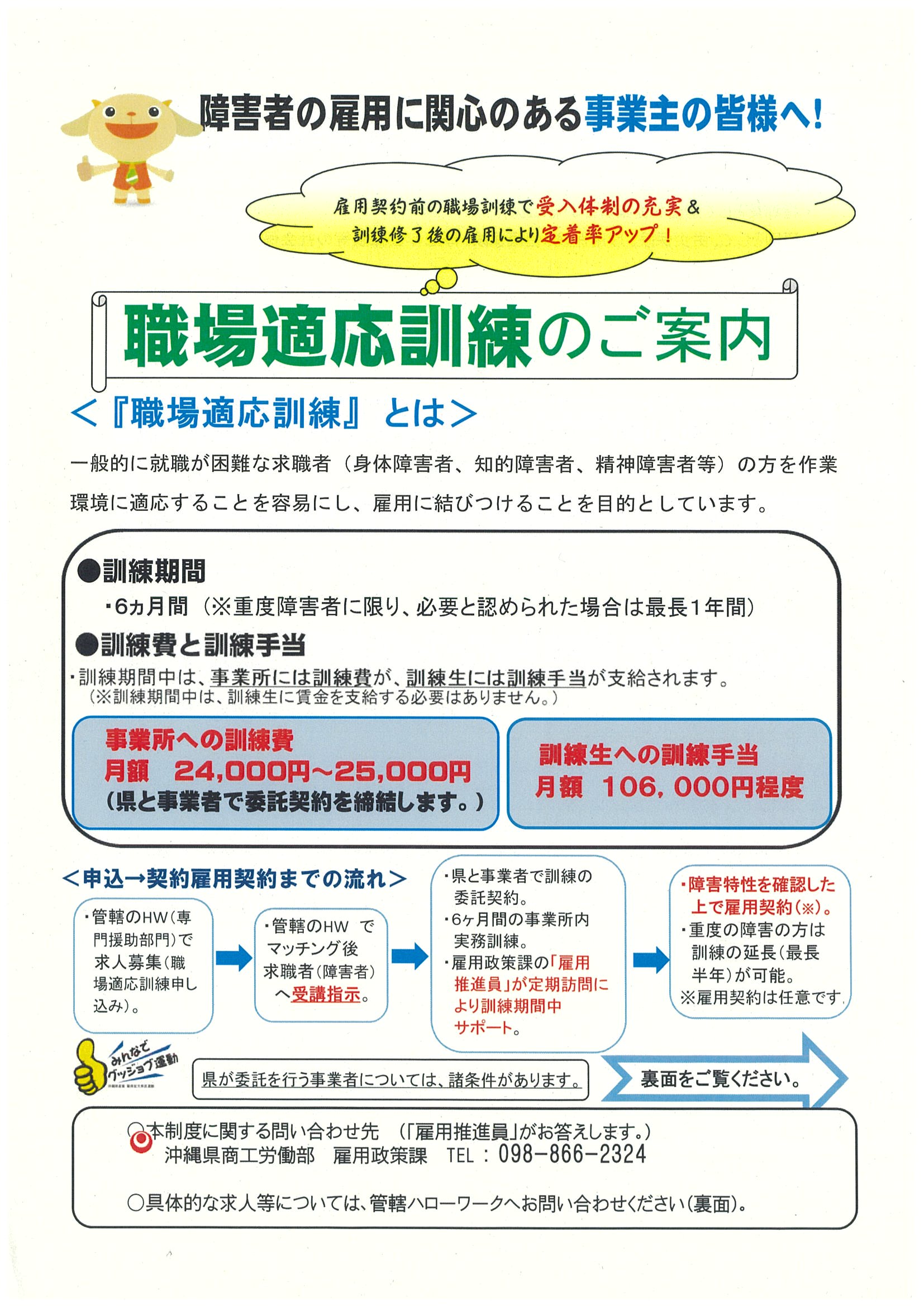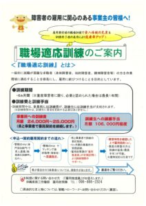 職場適応訓練のご案内(表面)