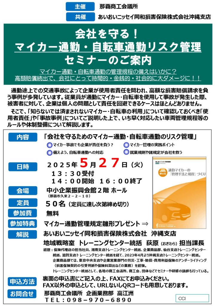 チラシはこちら⇒ マイカー通勤・自転車通勤リスク管理セミナー
