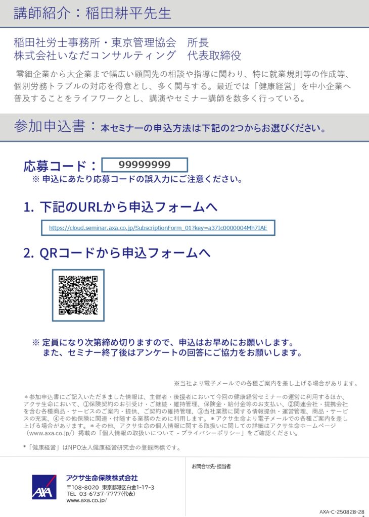 申込URL : ➡ お申込みはこちら (応募コード:99999999 をご記入ください)