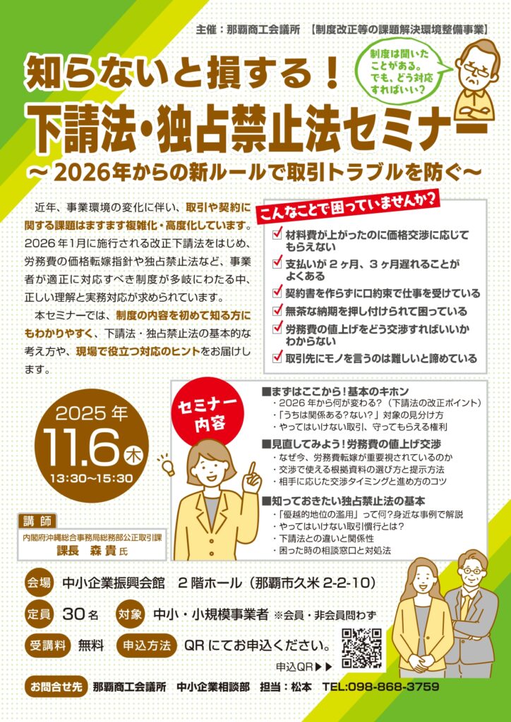 お問合せ:那覇商工会議所 中小企業相談部